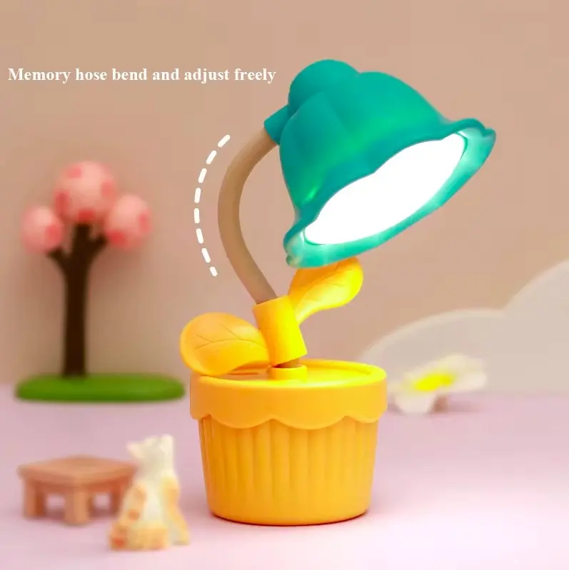 Cute Flower Shape Night Light LED Table Lamp USB Charging Desktop Accessories Students Study Reading Light Children's Gifts